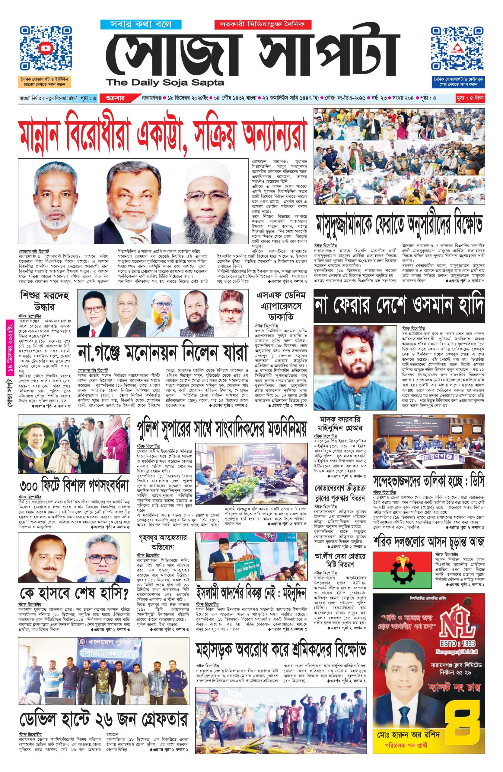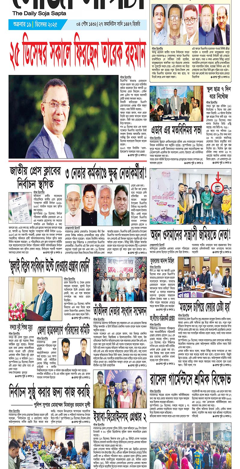 শুক্রবার, ১৯ ডিসেম্বর ২০২৫, ১০:৪৩ অপরাহ্ন