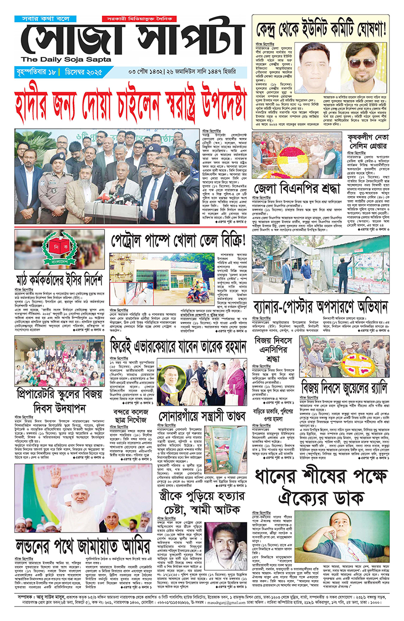 সোজা সাপটায় আপনাকে স্বাগতম, আমাদের সঙ্গে থাকুন, প্রিন্ট পেপার ক্রয় করে সহযোগিতা করুন, বিজ্ঞাপন দিন, আপনার এলাকার সমস্যা সম্পর্কে আমাদের জানান, আমরা আপনাদের পাশে থাকার প্রতিশ্রুতি দিচ্ছি।