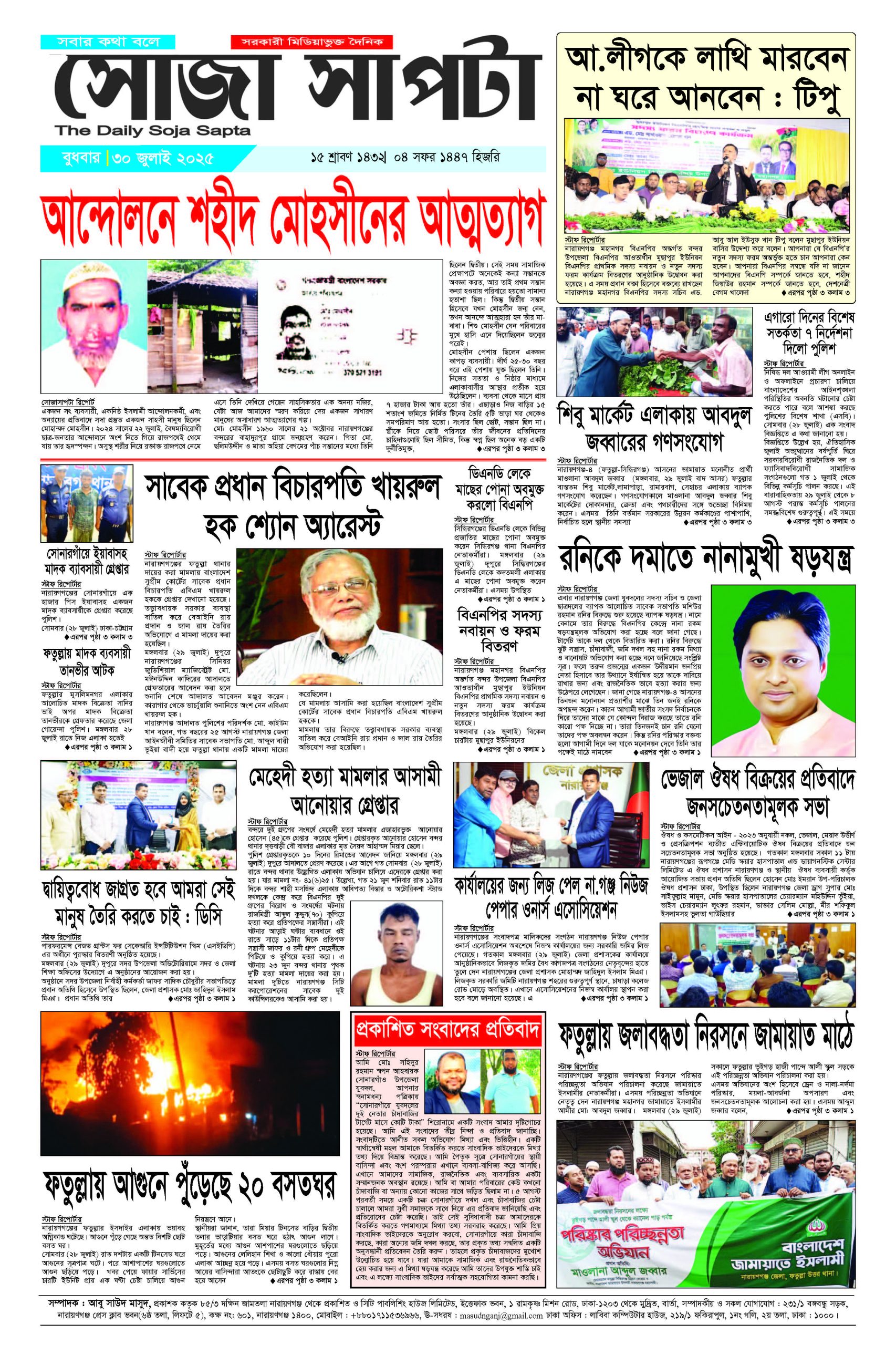 সম্পাদক : আবু সাউদ মাসুদ, সিটি পাবলিশিং হাউজ লিমিটেড, ইত্তেফাক ভবন, ১ রামকৃষ্ণ মিশন রোড, ঢাকা-১২০৩ থেকে মুদ্রিত, সম্পাদকীয় ও সকল যোগাযোগ :২৩১/১ বঙ্গবন্ধু সড়ক, নারায়ণগঞ্জ প্রেস ক্লাব ভবন(৬ষ্ঠ তলা, লিফটে ৫), কক্ষ নং: ৬০১, নারায়ণগঞ্জ ১৪০০, মোবাইল : +৮৮০১৭১১৫৩৬৯৬৬, E-mail : masudnganj@gmail.com ঢাকা অফিস : লাবিবা কম্পিউটার হাউজ, ২১৯/১ ফকিরাপুল, ১নং গলি, ২য় তলা, ঢাকা : ১০০০