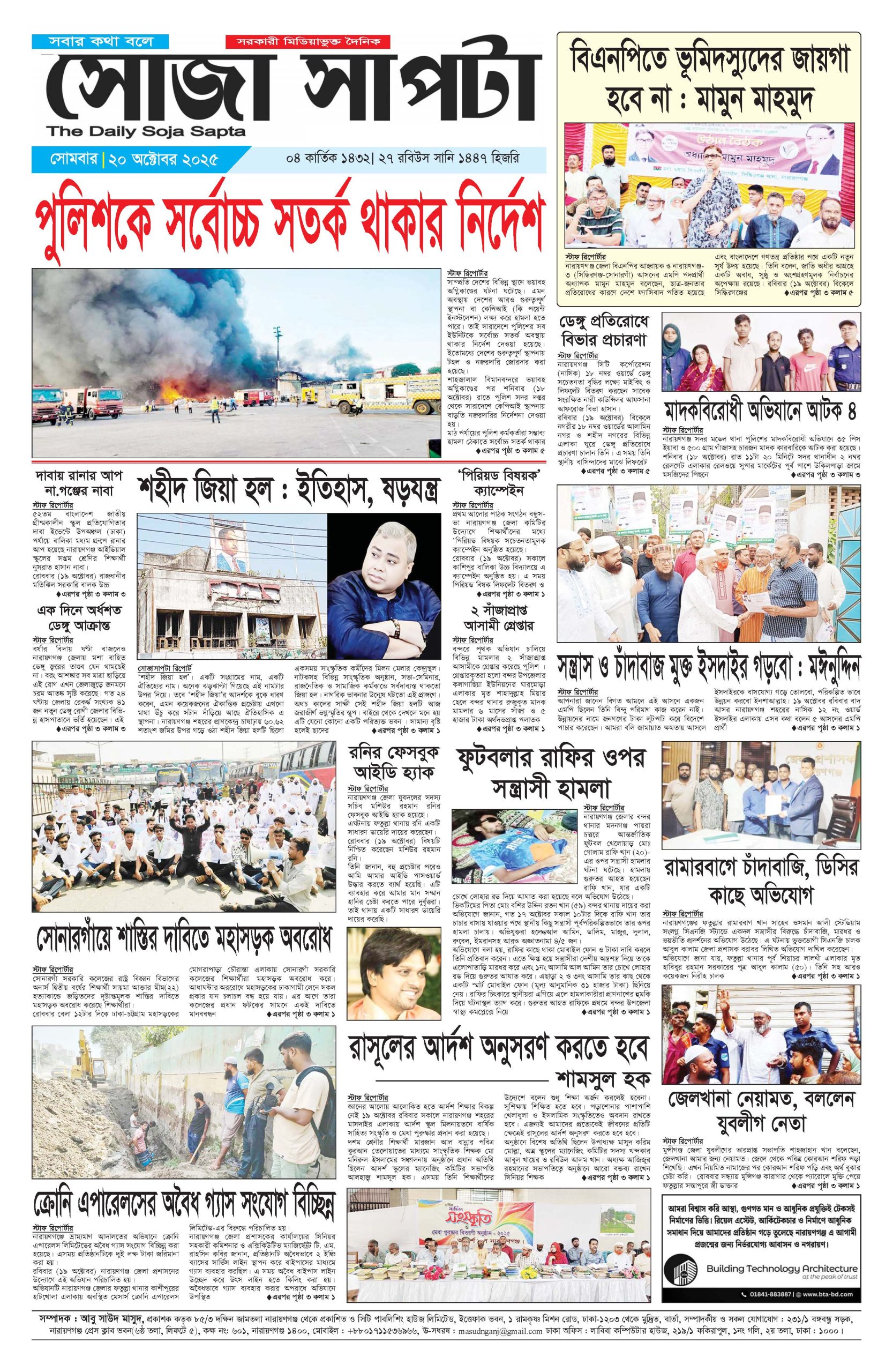 সম্পাদক : আবু সাউদ মাসুদ, সিটি পাবলিশিং হাউজ লিমিটেড, ইত্তেফাক ভবন, ১ রামকৃষ্ণ মিশন রোড, ঢাকা-১২০৩ থেকে মুদ্রিত, সম্পাদকীয় ও সকল যোগাযোগ :২৩১/১ বঙ্গবন্ধু সড়ক, নারায়ণগঞ্জ প্রেস ক্লাব ভবন(৬ষ্ঠ তলা, লিফটে ৫), কক্ষ নং: ৬০১, নারায়ণগঞ্জ ১৪০০, মোবাইল : +৮৮০১৭১১৫৩৬৯৬৬, E-mail : masudnganj@gmail.com ঢাকা অফিস : লাবিবা কম্পিউটার হাউজ, ২১৯/১ ফকিরাপুল, ১নং গলি, ২য় তলা, ঢাকা : ১০০০