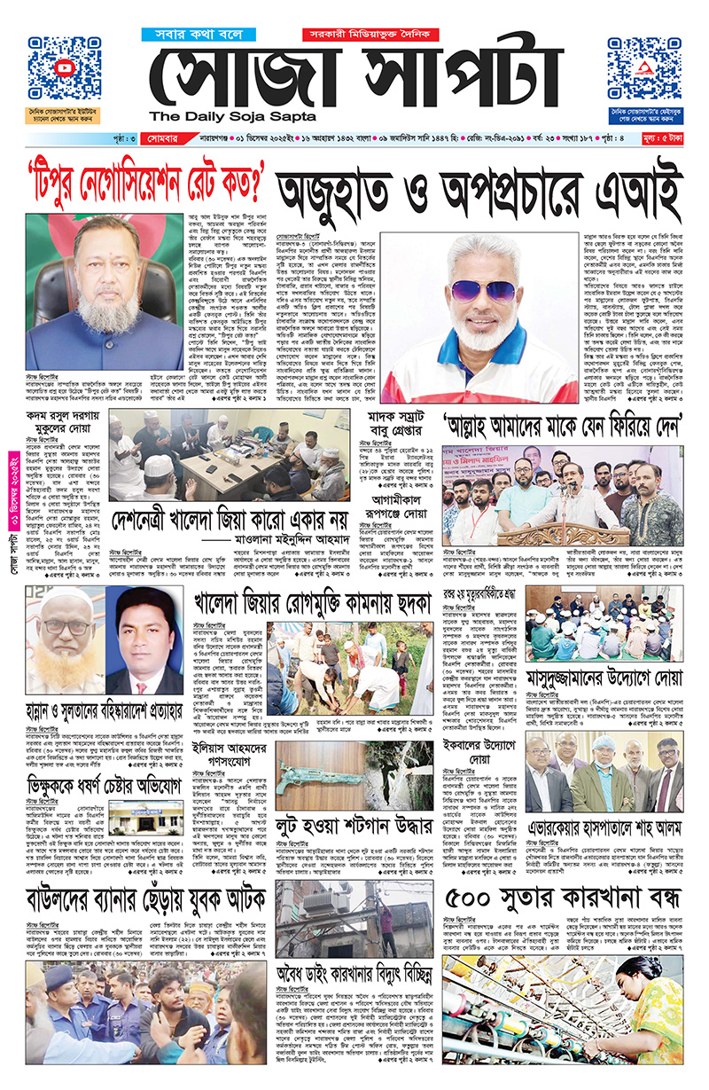 সোজা সাপটায় আপনাকে স্বাগতম, আমাদের সঙ্গে থাকুন, প্রিন্ট পেপার ক্রয় করে সহযোগিতা করুন, বিজ্ঞাপন দিন, আপনার এলাকার সমস্যা সম্পর্কে আমাদের জানান, আমরা আপনাদের পাশে থাকার প্রতিশ্রুতি দিচ্ছি।